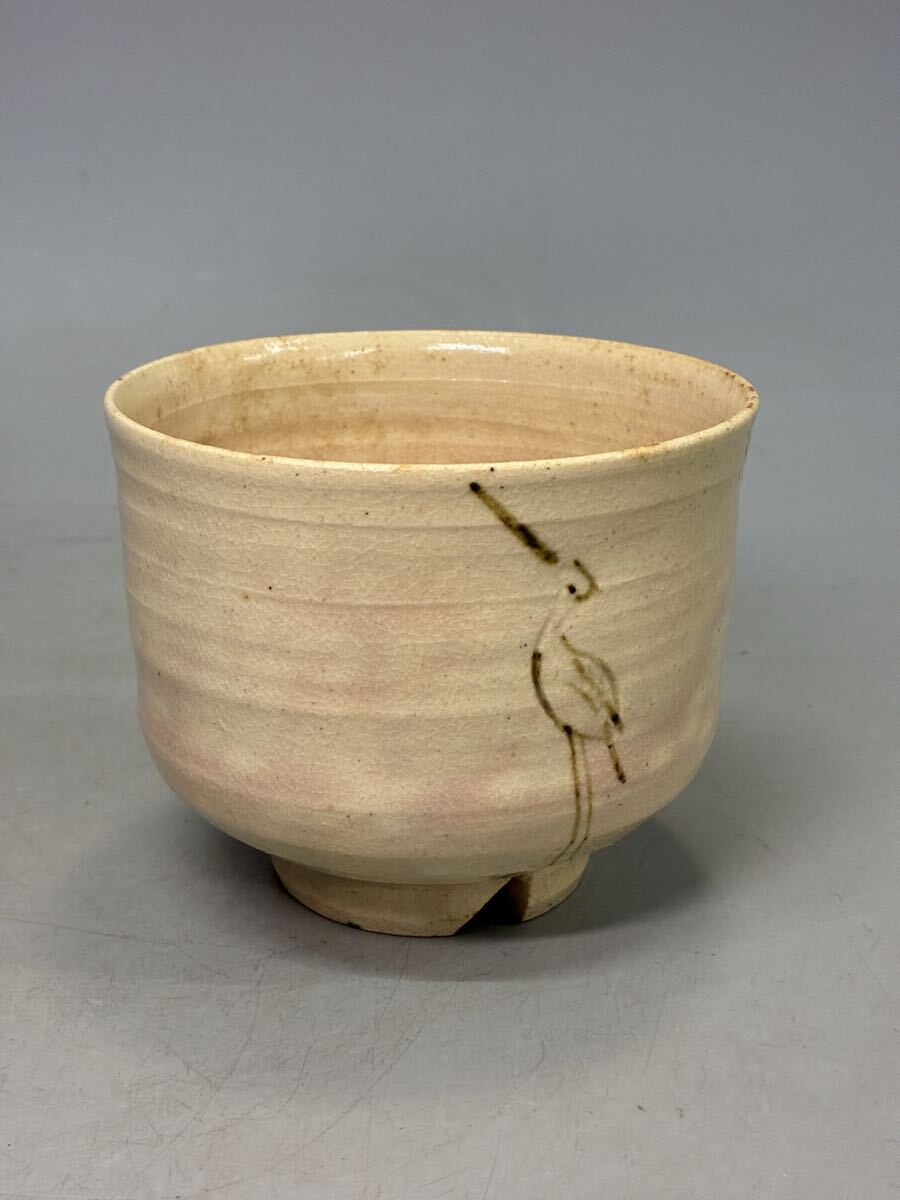 - 萩焼 鶴文花瓶 抹茶碗 茶碗 陶磁器 茶道具 萩茶碗 割高台 煎茶道具 煎茶器 古美術品
