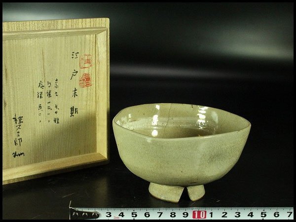 > 【金閣】茶道具 古萩 刷毛目茶碗 江戸末期 桂又三郎 書付 旧家蔵出 送料無料(YC560)