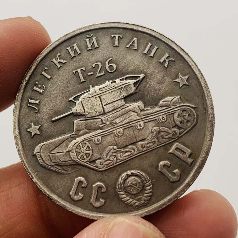 - 送料無料! 1945ソ連戦車戦闘機T-26型黄銅旧銀記念メダル タンク セット1枚 貨幣 外国コイン 硬貨