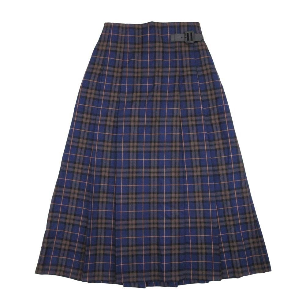 - 未使用 22aw GU ジーユー ベルテッド チェック柄 プリーツ ミディ キルト スカート ロング イージーウエスト S 青 ブルー系