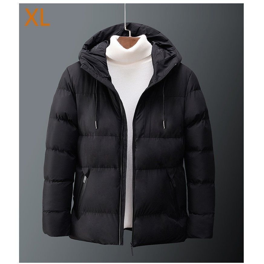 - ダウンジャケット メンズ 中綿ジャケット 冬 アウター フード付き 暖かい 軽い おしゃれ 無地 ブラックXLサイズ