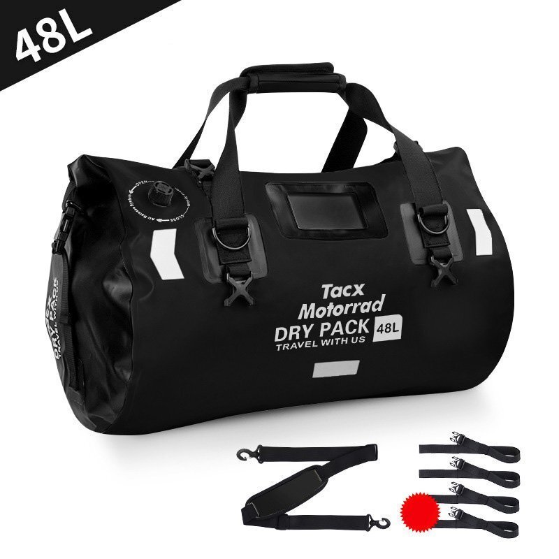 - 多機能 バイク用シートバッグ キャンプ 大容量48L 容量可変 防水 折り畳んで収納 通勤通学 リフレクター 大きな開口部 (ブラック) hw378bk