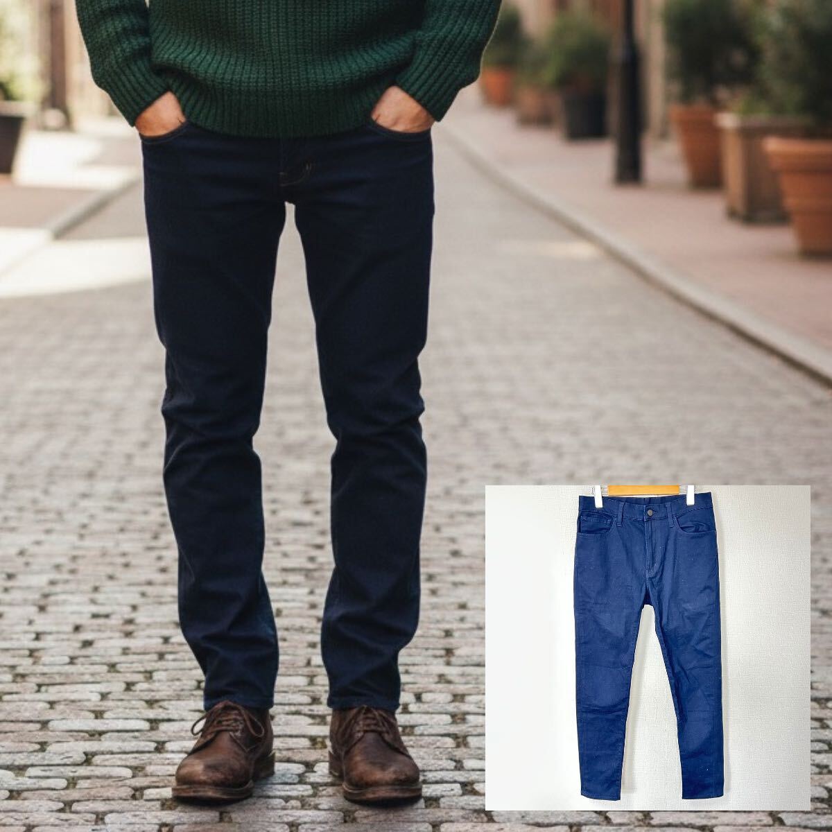 > ストレスフリーなはき心地◎【UNIQLO】ユニクロ ウルトラストレッチ スキニーフィット カラージーンズ ネイビー 紺 メンズS/Y38191YY
