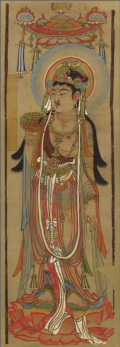 - 敦煌壁画 莫高窟 観音図 仏像 仏画 絹布 観世音菩薩 仏画 菩薩像 観音像 縦幅 仏教美術 絹本 掛け物 未表装