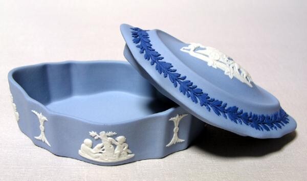 - ◎未使用 ウェッジウッド 3色ジャスパー 可愛い変形蓋物 小物入れ◎極希少