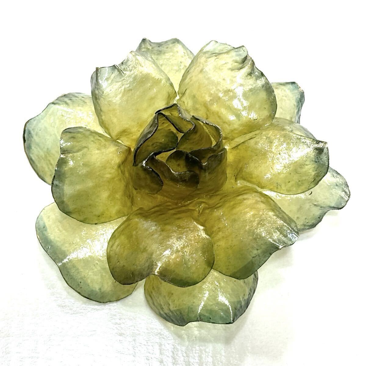 - ★新品未使用 本革シースルーレザーフラワーブローチ コサージュ クリーム グリーン バラ 椿 結婚式 成人式 入学式 卒業式 和装 お花 浴衣