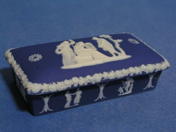 - ◎1930年代 ウェッジウッド 青色を被せた白のジャスパー 長方形蓋物◎za