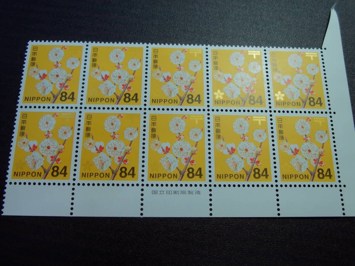 - 普通切手 84円 ウメ 国立印刷局銘鈑付き10枚ブロック 極美品