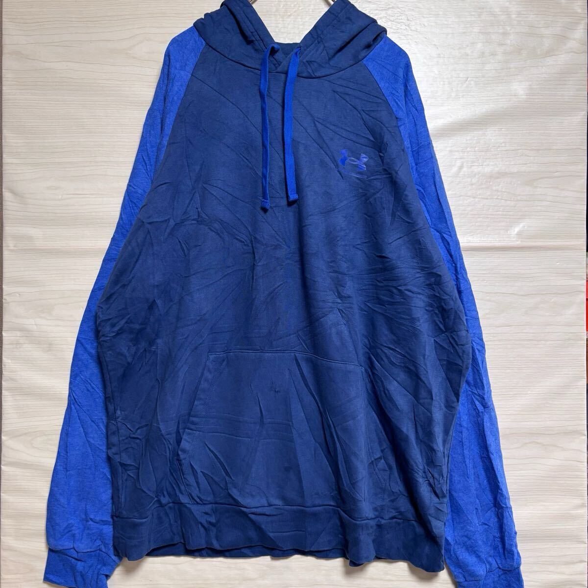 > UNDER ARMOR アンダーアーマー プルオーバーパーカー フーディー スウェット ラグラン サイズ3XL ブルー コットン メンズ トップス(45)