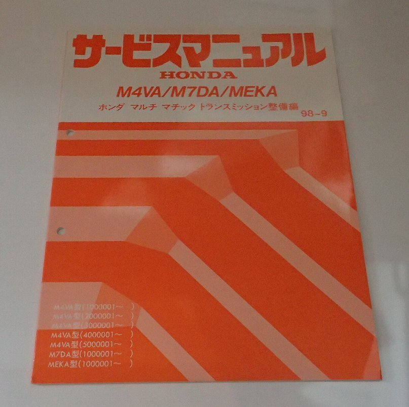 > ●「HONDA サービスマニュアル M4VA/M7DA/MEKA マルチ マチック トランスミッション整備編 98-9」