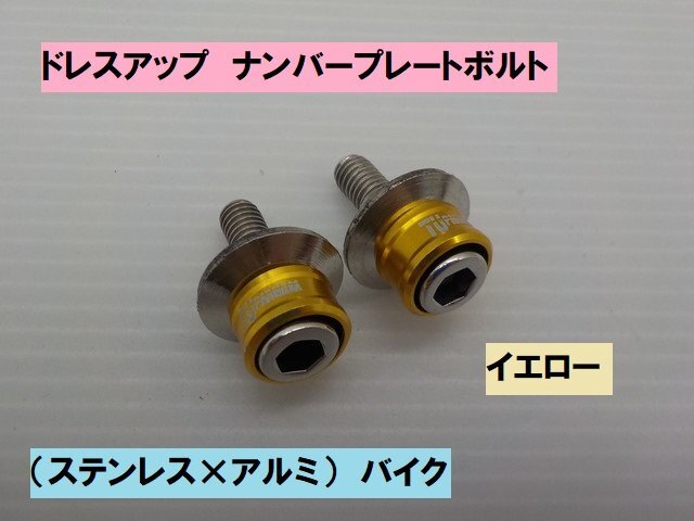 > VT★☆(33)汎用ドレスアップナンバープレートボルト(ステンレス×アルミ)バイク イエロー(XJR400 レブル 250TR エイプ レッツ)