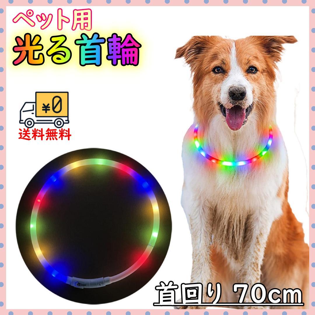 - ペット用 光る首輪 レインボー ピカピカ 夜間 散歩 中型犬 安全 USB L