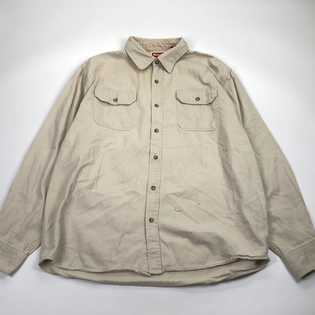- L Wrangler シャツ ワークシャツ 胸ポケット ライトベージュ 長袖 古着 sh0996