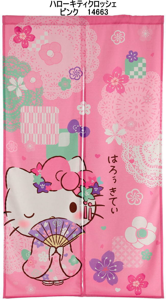 - サンリオのれん 本縫いのれん85センチ×150センチ/ハローキティ クロッシェ ピンク14663-naru