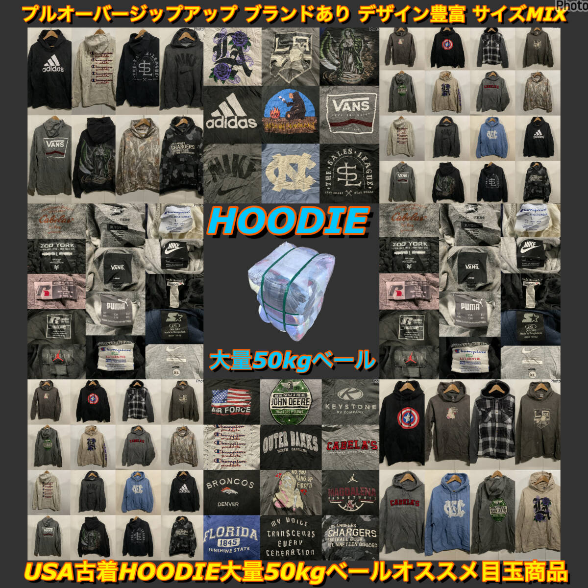 > 【T1776】★SALE★ アメリカ古着 大人気HOODIE大量50kgベール目玉商品 デザイン豊富 ブランドあり プルオーバー ジップアップ 大量仕入れ