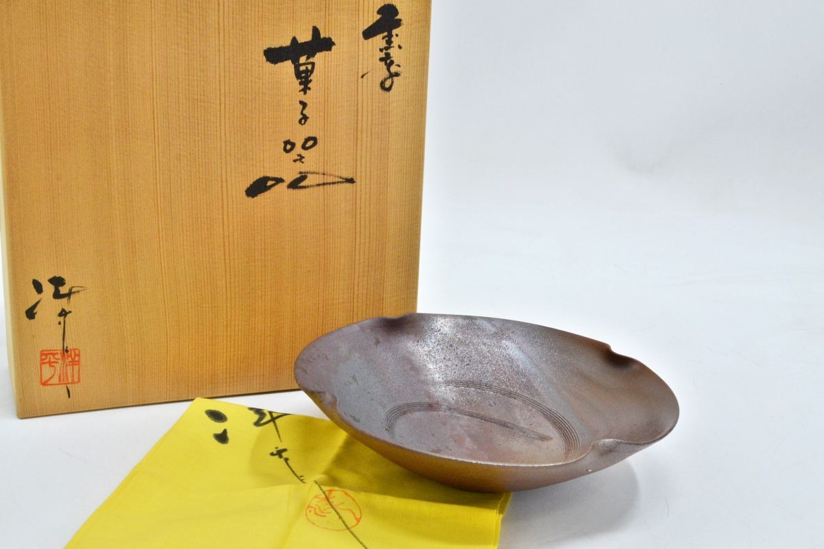- (1295M 1119R1) 1円~未使用 小西洋平 常滑焼 菓子器 菓子鉢 器 盛皿 窯変練込 共箱 常滑名工 伝統工芸 陶芸品 陶器食器