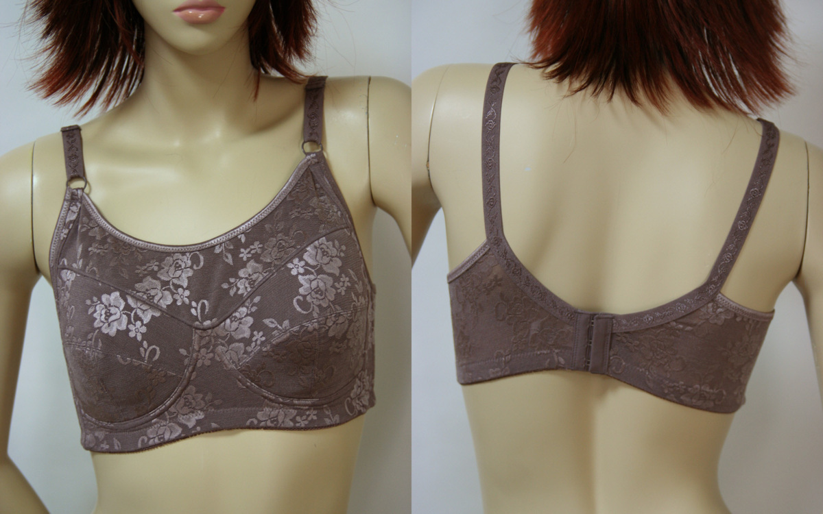 - 送料無料◆2枚組◆背中&バストすっきり◆ノンワイヤー◆フルカップブラジャー(F/80/グレー)脇高パターン◆柄編み◆快適な付け心地◆261