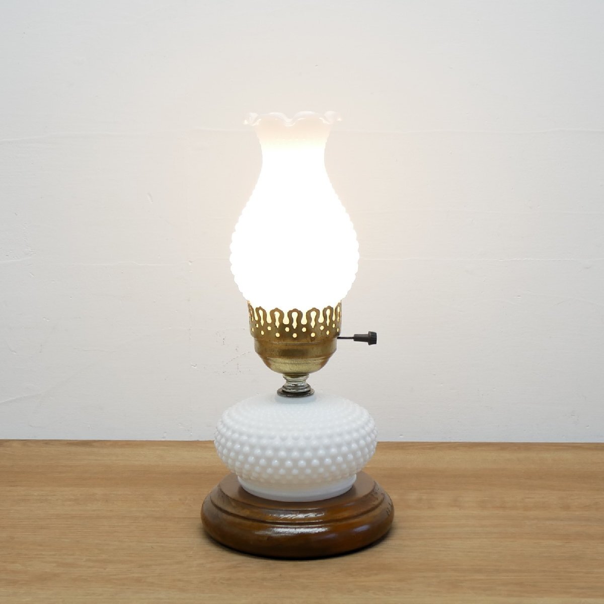 > 60's 70's ホブネイル ミルクガラス テーブルランプ / アメリカ ヴィンテージ オイルランプ風 照明 #702-20-207-699