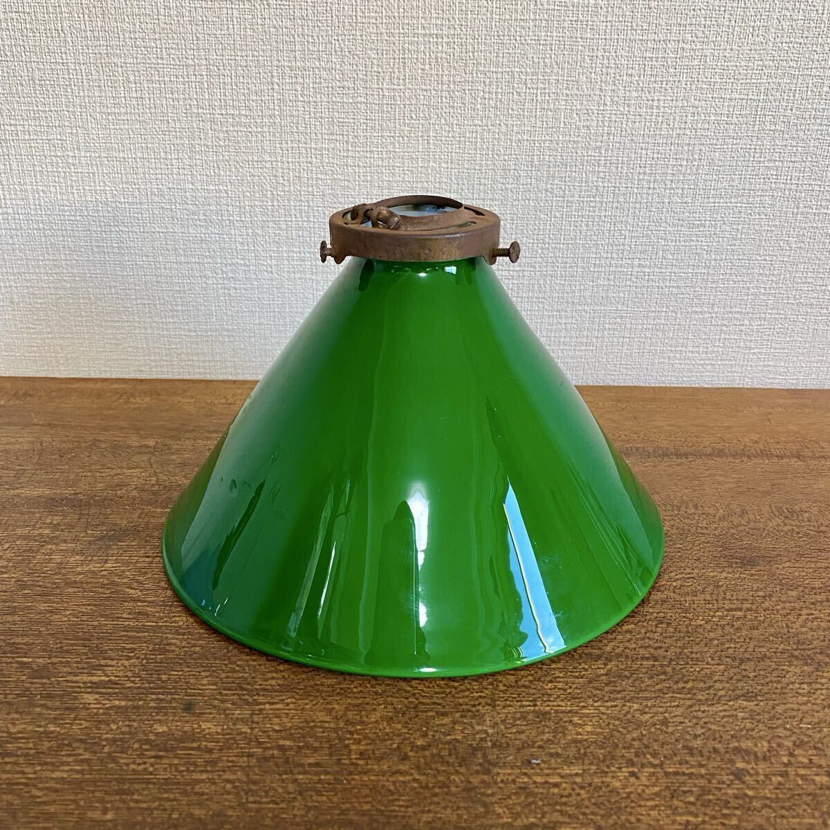 - アンティーク 綺麗な緑ガラス ランプシェード 電傘 / ペンダントライト 照明 電笠 グリーン 昭和レトロ 当時物
