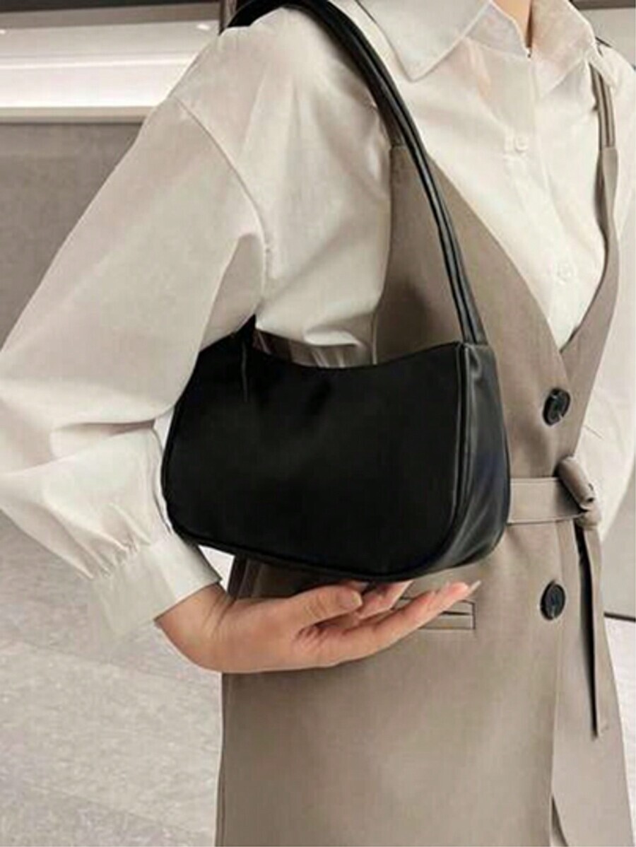 - バッグ レディース ショルダーバッグ ミニマリスト バゲットバッグ ショルダーバッグ レディース スリム ソリッドカラー プレーン