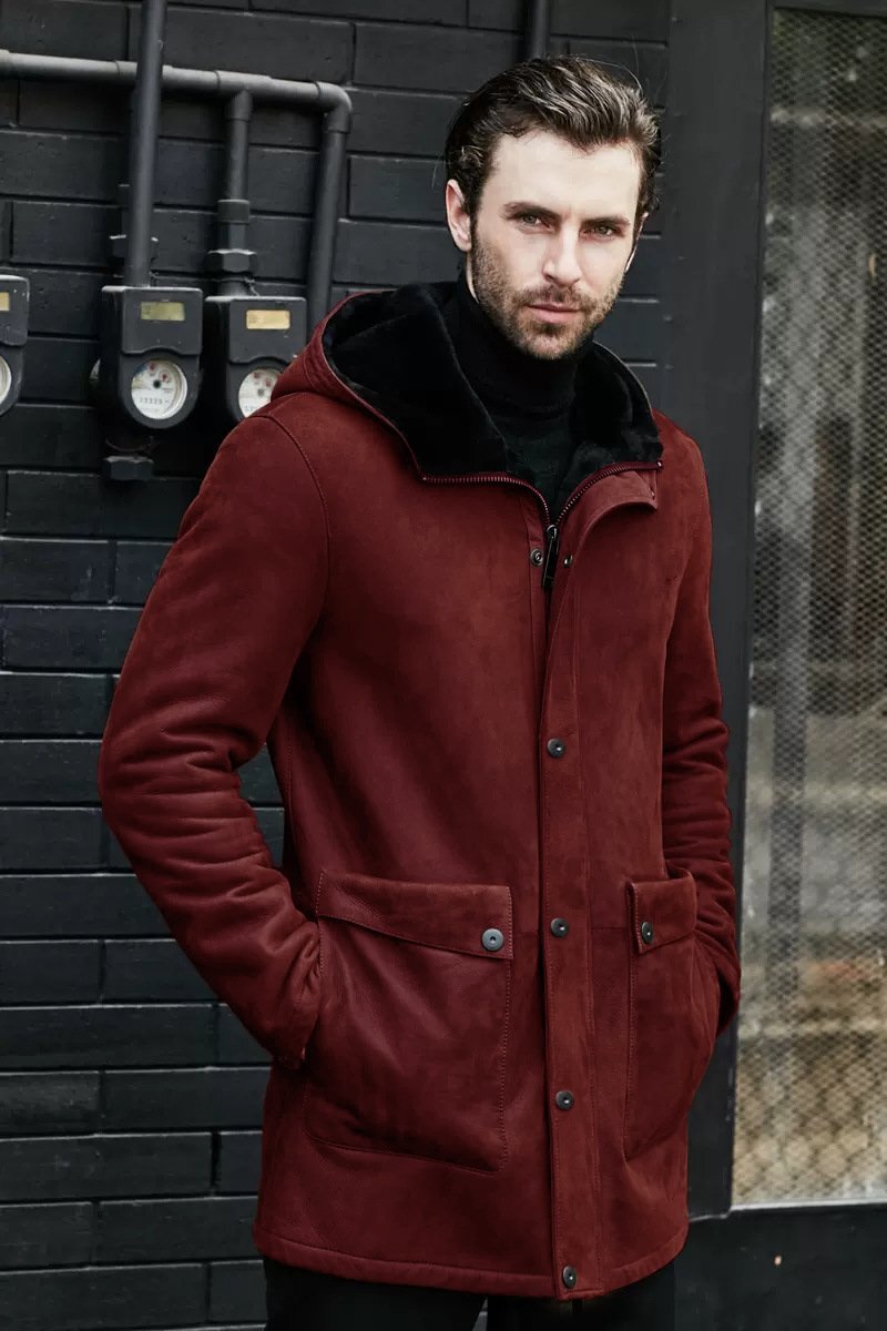 > ロングジャケット イタリア製造 ロングフードコート 薄くて暖かくて柔らかい 裏地はフリース付き 通勤 紳士 SIZE:M fz7