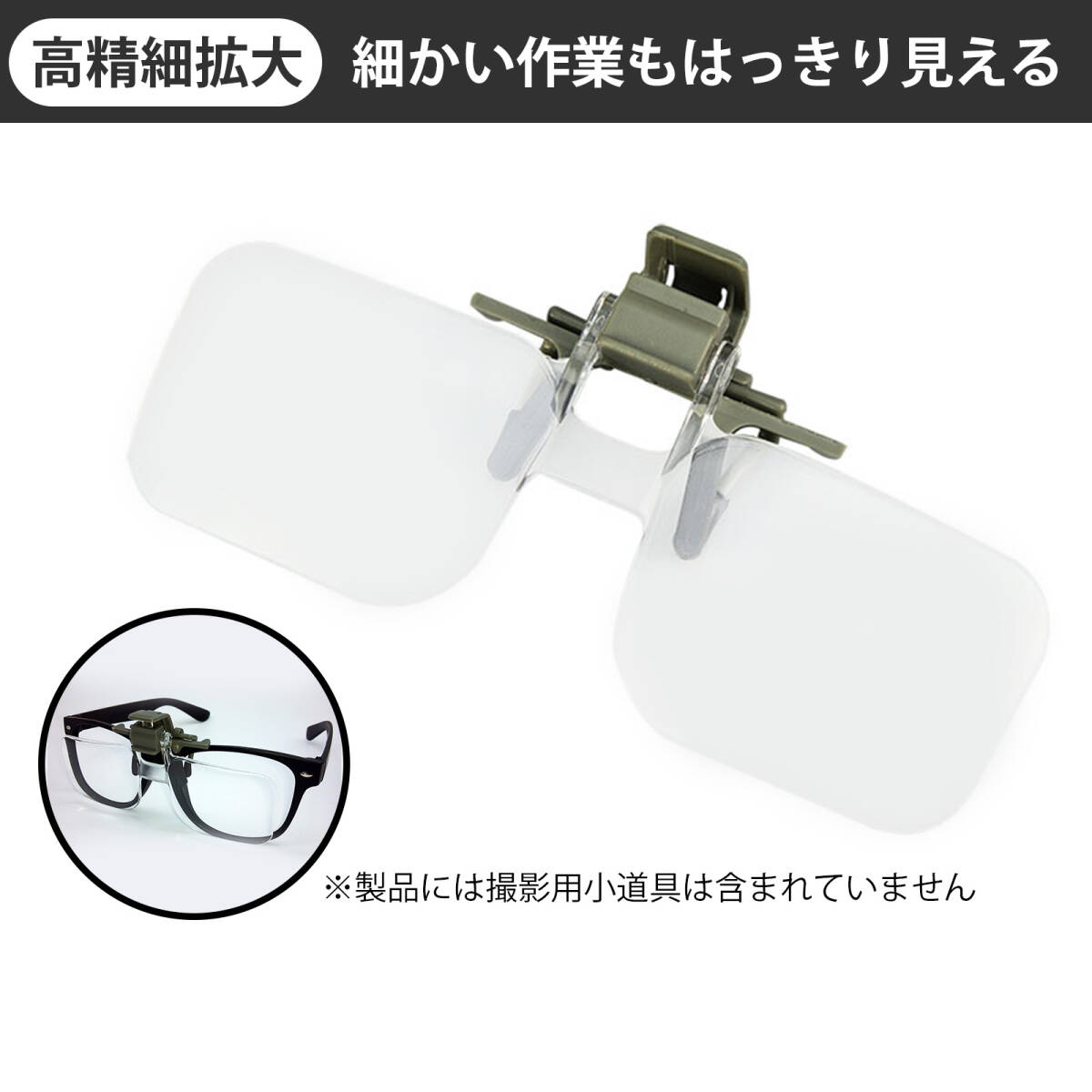 - 老眼鏡 クリップ式 ルーペメガネ 拡大鏡メガネ 眼鏡用クリップ式拡大鏡 2倍 HDアクリルレンズ 軽量ABSフレム老眼鏡対応 読書 手芸 ;J7200;