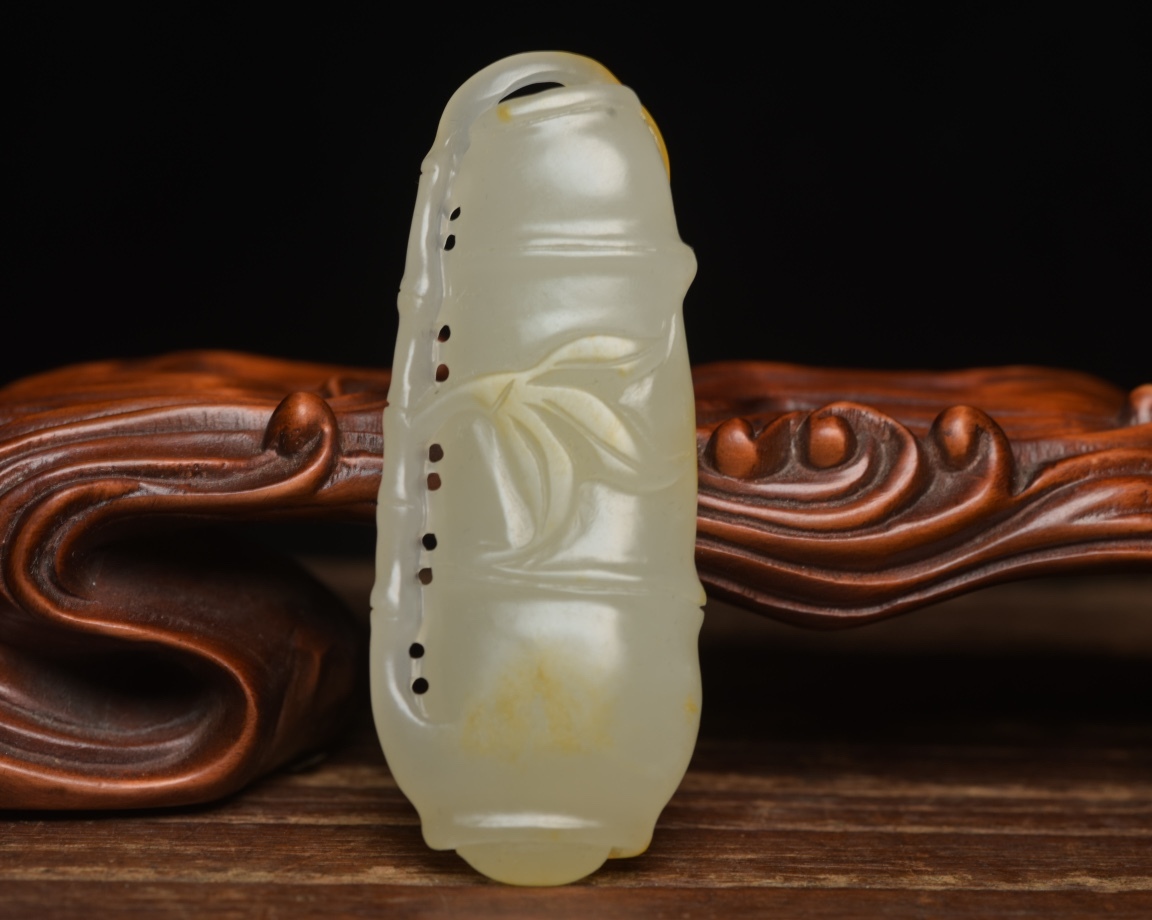 - 旧蔵 和田玉彫 竹子 節節高升 跟付 中国古玩 骨董品 時代物 稀少唐物