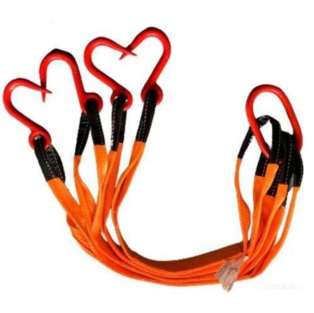 - 新入荷4点吊りスリングベルト 玉掛け用金具付き ベルトスリング 4 炭素鋼製 フック付き リング付き ポリエステル製 ベルト長さ1m 耐荷重4t