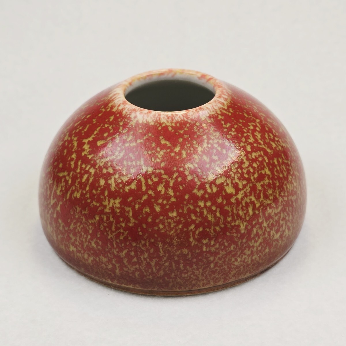 - 舶来品 中国古磁 文房具 紅釉 円形 水盂 筆洗 水鉢 乾隆在銘 激安