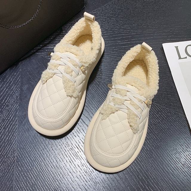 - モカシン ムートンパンプス ボアシューズ キルディング ファーシューズ レディース 裏起毛 フラットシューズ 防寒 靴 米色22.5 cm