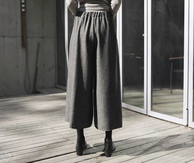 - ワイドパンツ レディース 暖かい ガウチ スカーチョ ボリューム ワイド ゆったり アンクルパンツ 九分丈 美脚 細見え 防寒 ダークグレーM