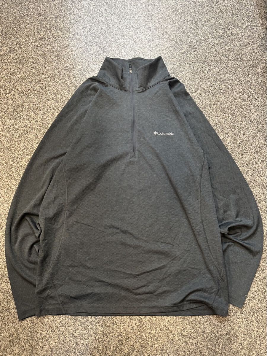 > Columbia コロンビア L ハーフジップトップス アウトドア グレー 無地 ロゴプリント 速乾性 長袖 ポリエステル トレーナー 古着 ユーズド