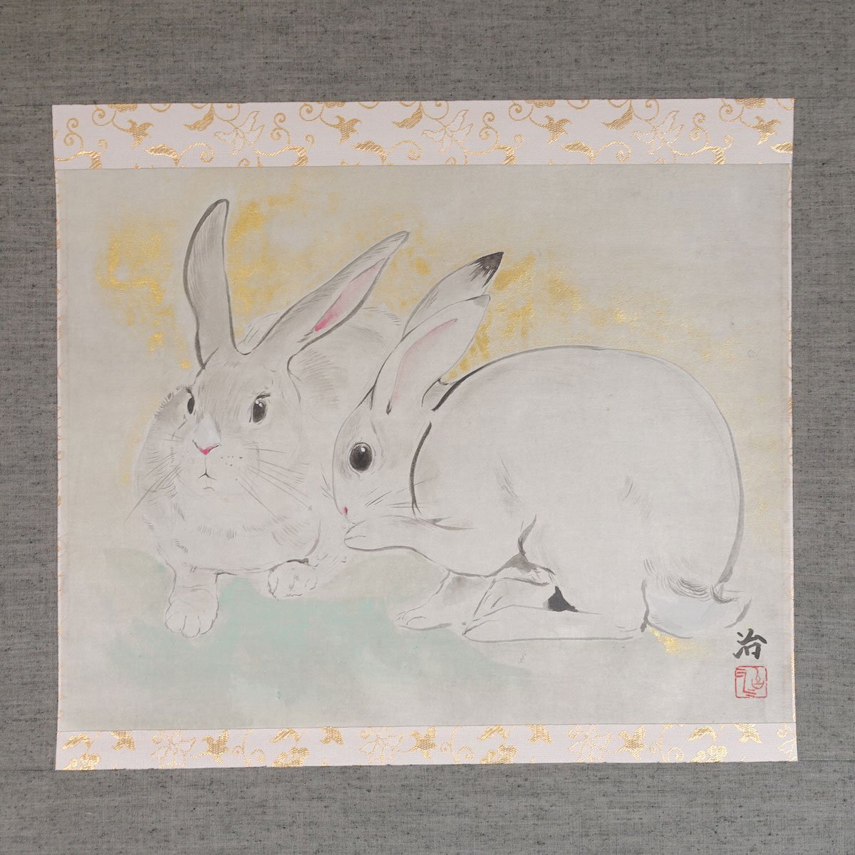 - 【真作】 蔵壷◆『臼井治 卯図』 1幅 共箱 古筆 古文書 古書 日本画 動物画 花鳥画 兎 片岡球子に学ぶ 茶掛軸 愛知県 名古屋