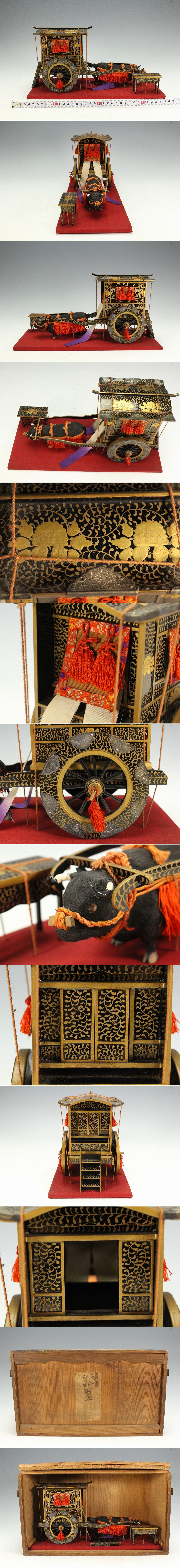 - 【金閣】古い 唐草蒔絵 牛車 雛道具 置物 旧家蔵出 送料無料(XA958)