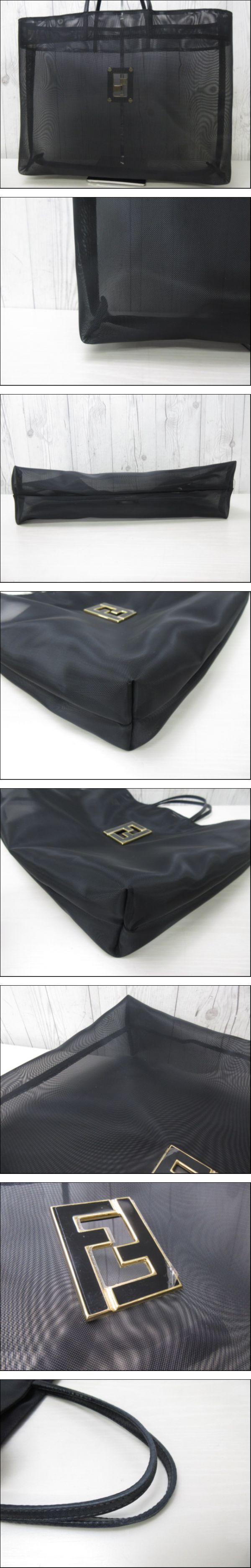 > 極美品 FENDI フェンディ トートバッグ ハンドバッグ バッグ メッシュ×レザー 黒 A4収納可 92366