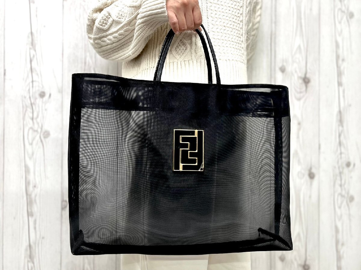 - 極美品 FENDI フェンディ トートバッグ ハンドバッグ バッグ メッシュ×レザー 黒 A4収納可 92366