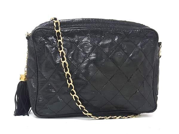 > 1円 ■極上■本物■ CHANEL シャネル ココマーク マトラッセ リザード クロスボディ ショルダーバッグ 斜め掛け ブラック系 FP9393