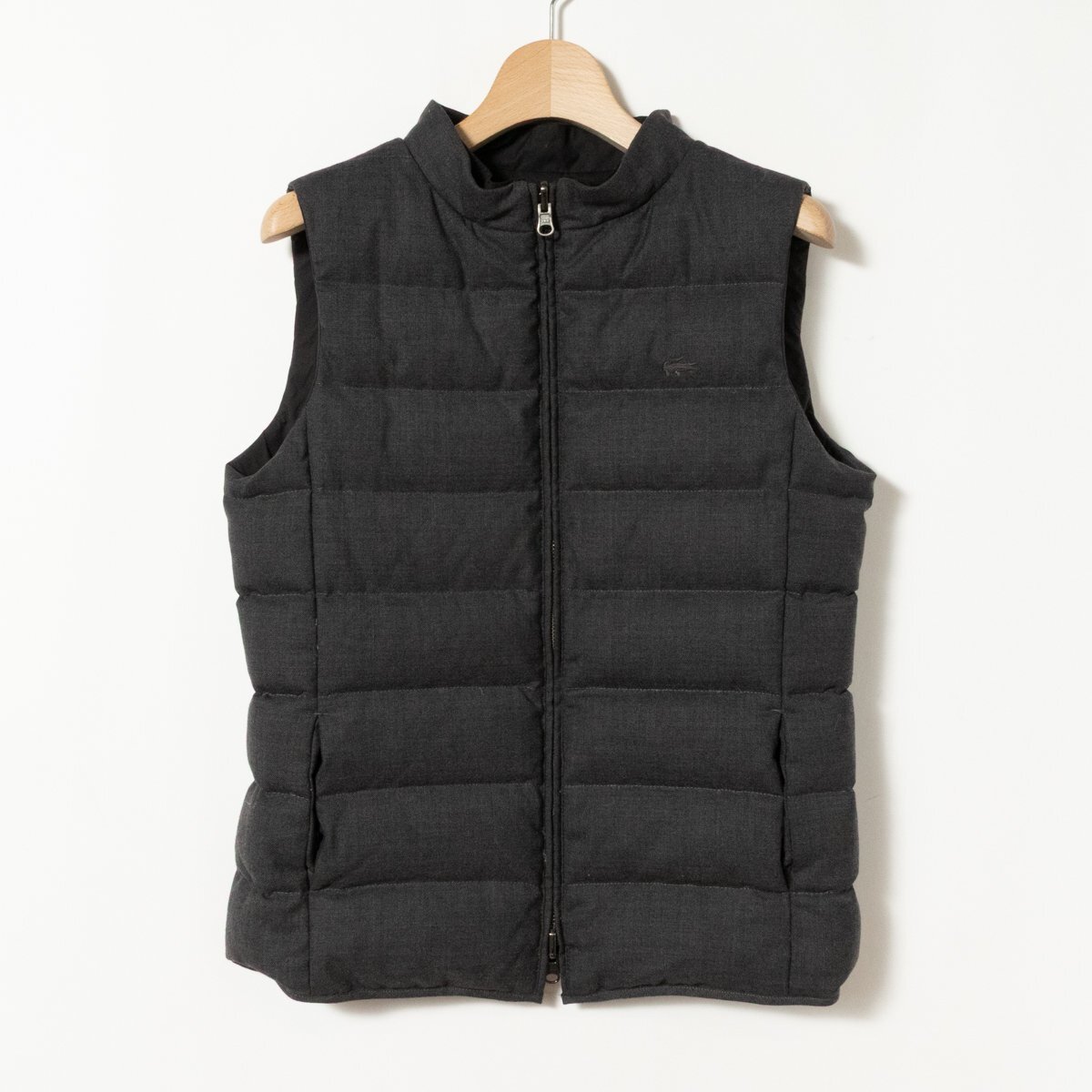 - LACOSTE ラコステ リバーシブルダウンベスト グレー ブラック 36 S レディース 毛 ポリ ダウン フェザー 防寒 スポーティ 重ね着 ロゴ刺繍