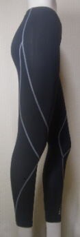 > 【冬 送料無料!】レディス 10分丈 レギンス【UVカット、吸汗速乾】両脚3本針ステッチストライプ<黒×グレー:L>445407