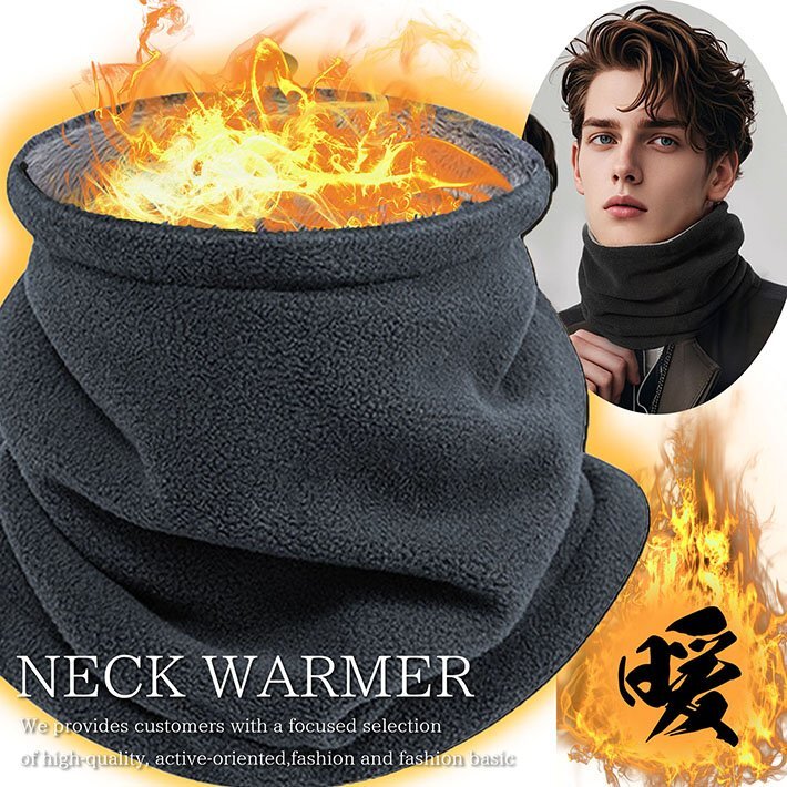 - ネックウォーマー マフラー メンズ レディース 防寒 調節コードつき 裏起毛 暖かい 3way 保温 軽量 7986890 チャコール 新品 1円 スタート