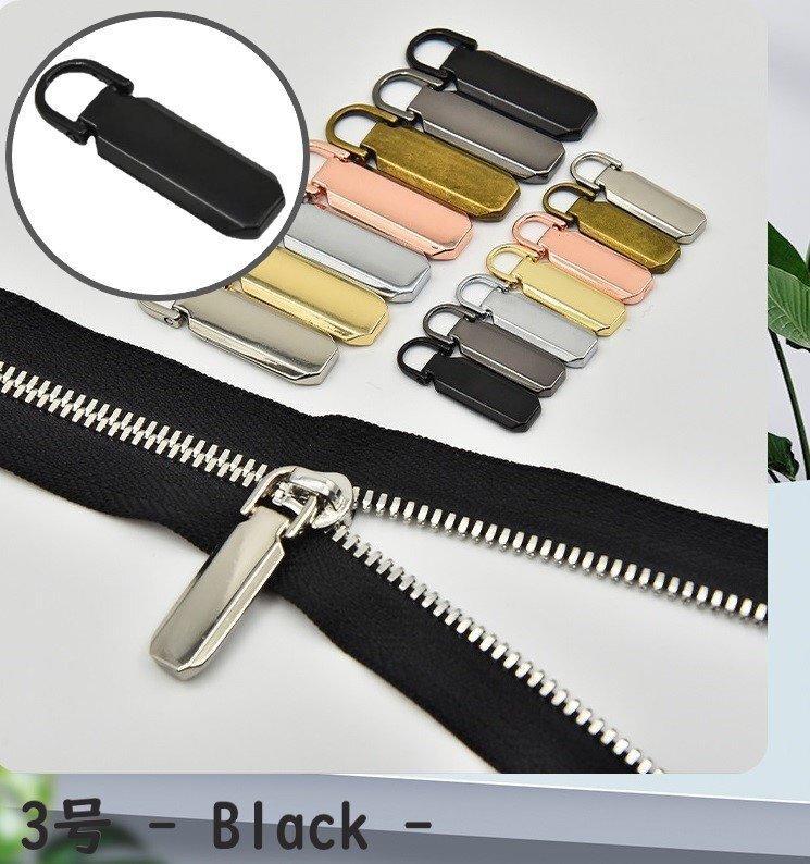> ファスナー 3号 ブラック チャック 引手 引き手 持ち手 取っ手 ジッパー プルタブ ファスナートップ 修理 交換 取替 金属金具 財布 a523