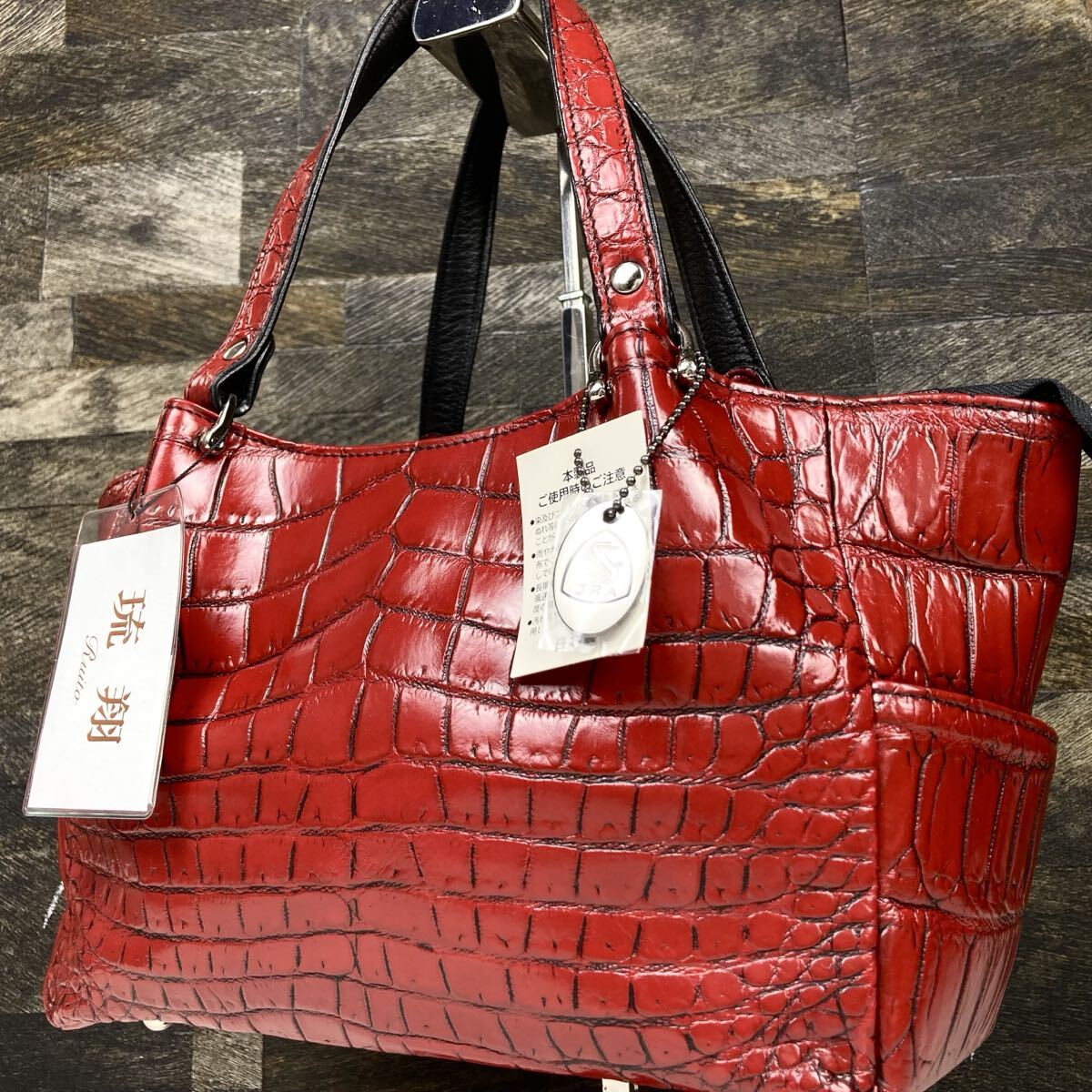 - 未使用保管品 定価65万円 JRA リアルマットクロコダイル センター取り ハンドバッグ トート 赤 レッド ワニ革 エキゾチックレザー