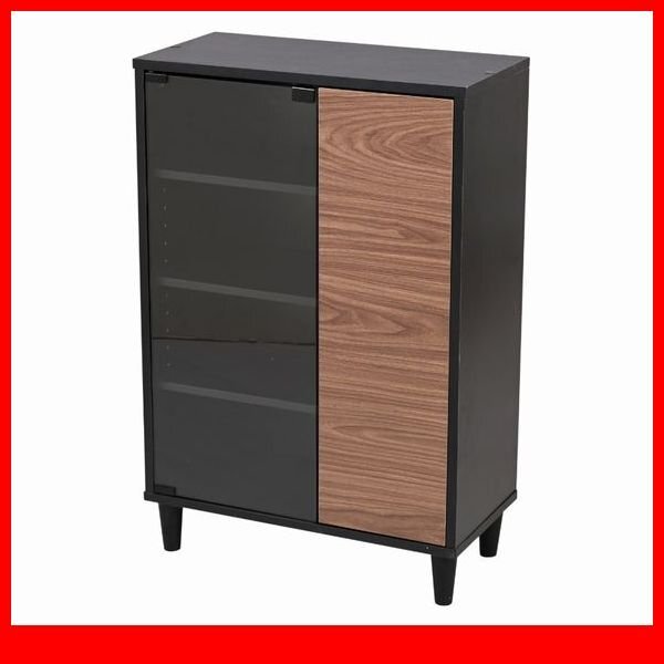 > キャビネット★新品/Adatto ガラス&扉/本棚 食器棚 ディスプレイラック 多目的収納 可動棚/ブラック×ブラウン/a4