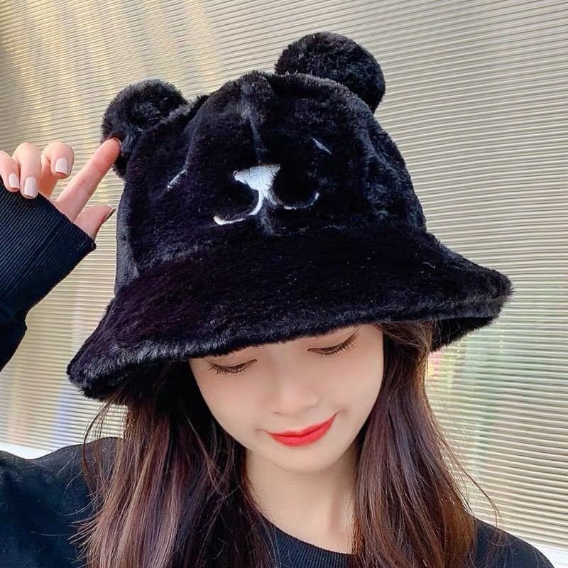 - ベアーズ ファー バケットハット ブラック ぬいぐるみ 帽子 レディース ハット ファー ファーハット