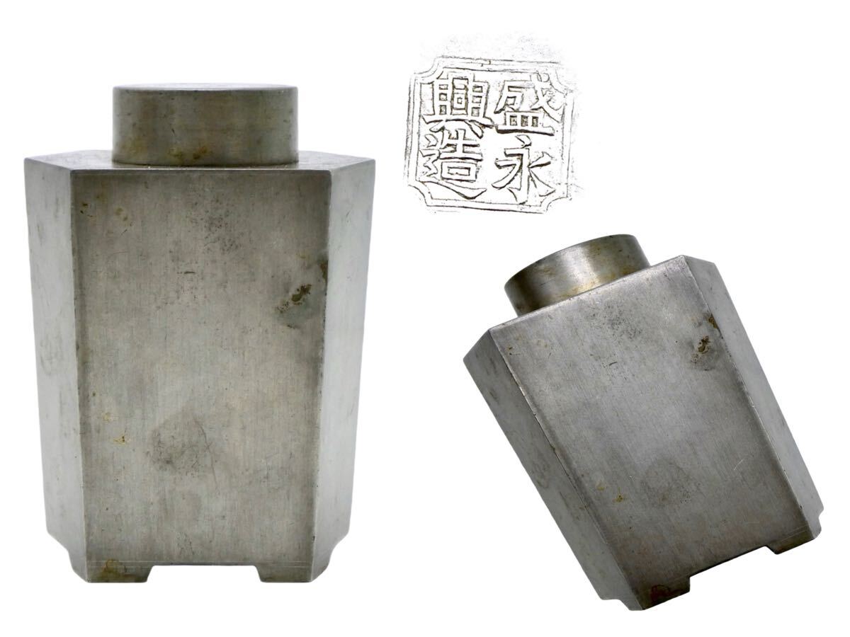 - GY 時代煎茶道具 古錫 六方 四足 茶入 茶心壺 盛永興造在銘 227g