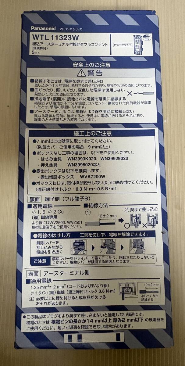 - 未開封品 Panasonic アドバンスシリーズ WTL11323W 埋込アースターミナル付ダブルコンセント5個入 アドバンスシリーズ