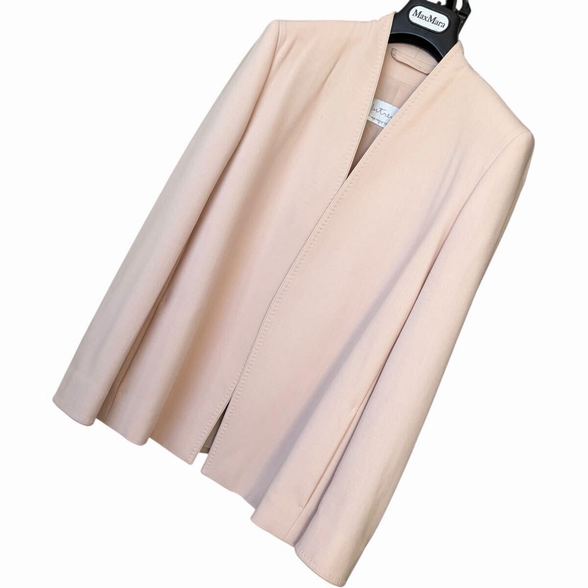 > 超高級美品近年 MaxMara セレブ御用達 カラーレス ジャケット イントレンド 綺麗色ピンクベージュ アイコンハンドステッチ 羽織り ベルト付