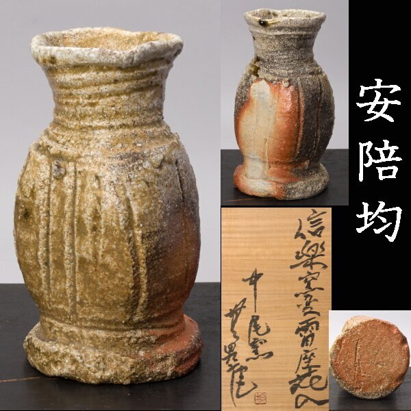 > 【千e524】無畏庵 安陪均「信楽 窯変 雷座 花入」共箱 中尾窯 花器