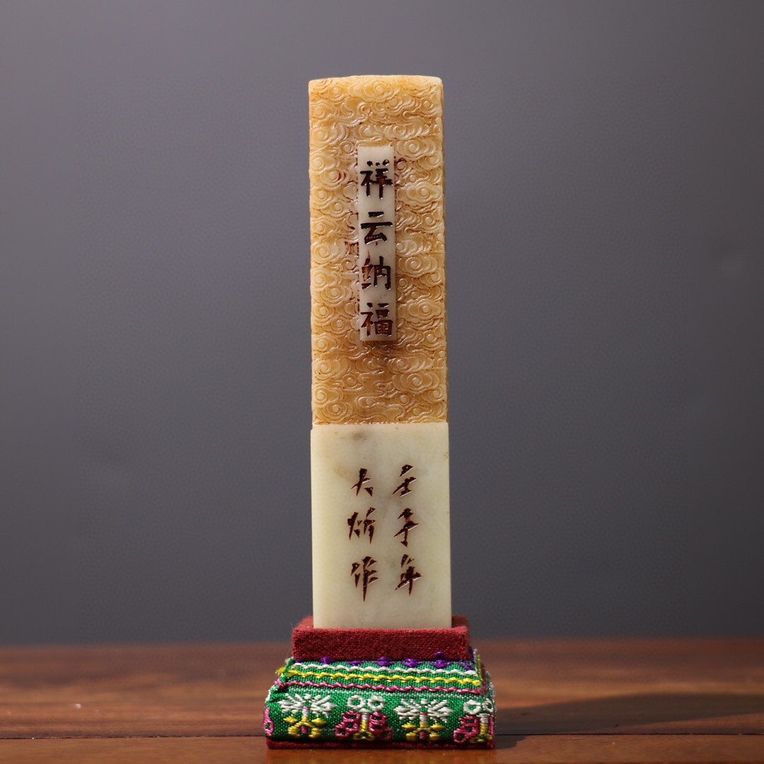 - 『清・寿山石・芙蓉石・細密彫・祥雲納福・印章・印鑒・文房具・書道品・文房賞物・古美術品』極細工 置物 古賞物 中国古玩 中国古美術