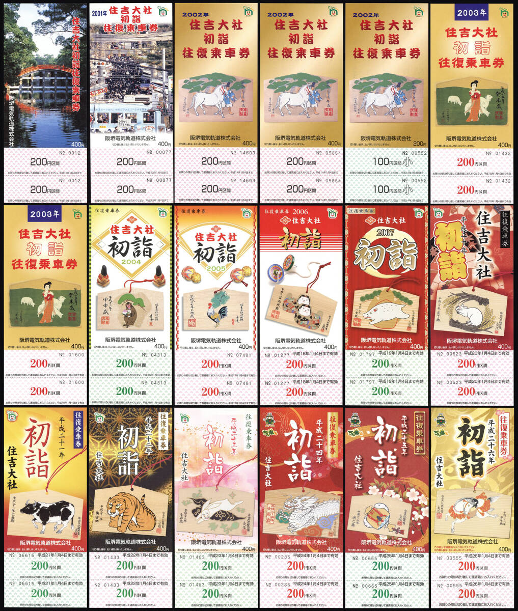 - H12-26 阪堺電気軌道 住吉大社初詣往復乗車券 16種18枚